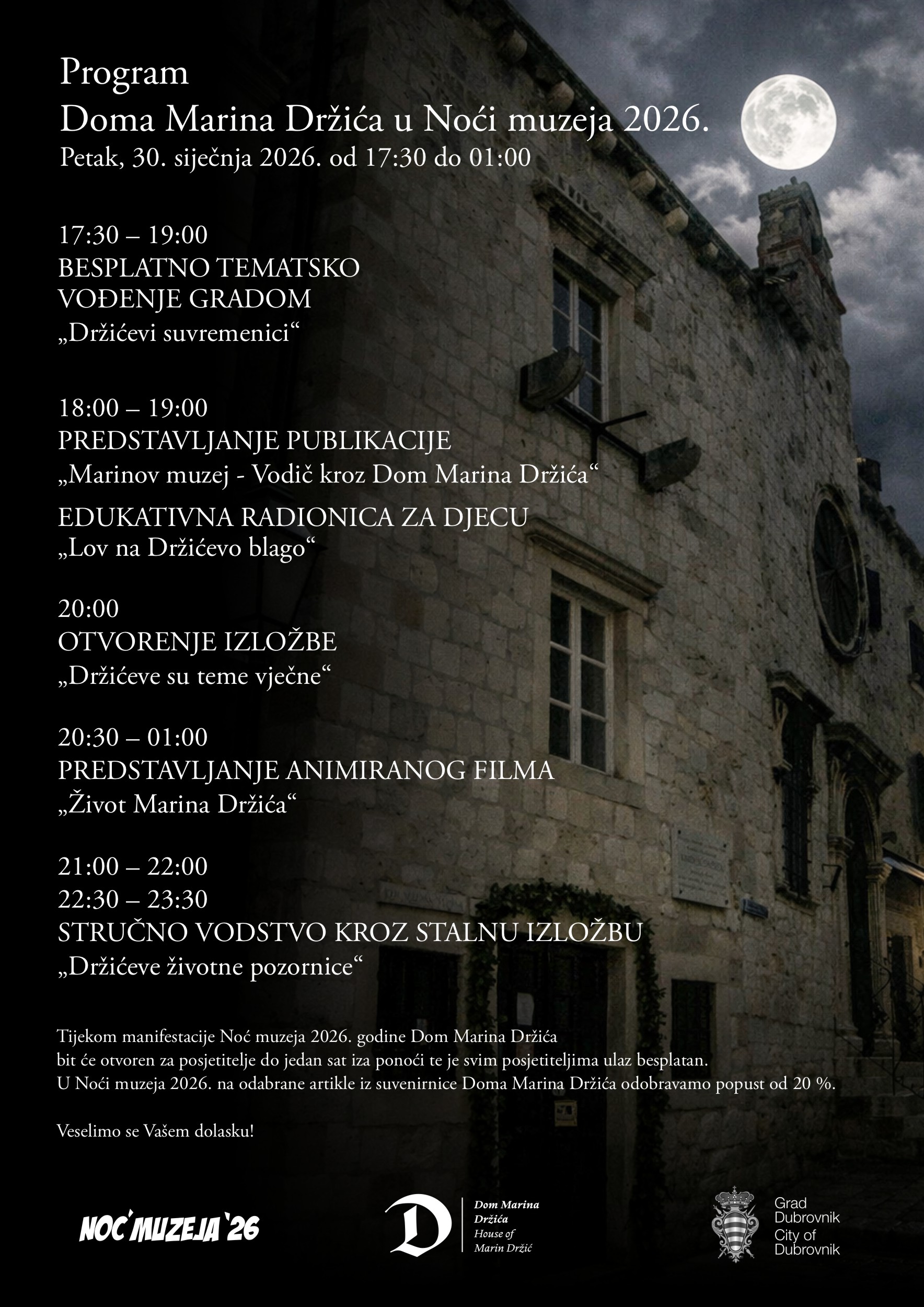 Program Doma Marina Držića u Noći muzeja 2026.