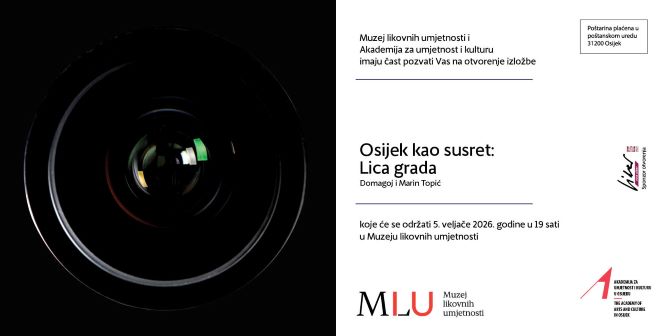 Muzej likovnih umjetnosti u suradnji sa Akademijom za umjetnost i kulturu Sveučilišta J.J. Strossmayera u Osijeku otvara izložbu „Osijek kao susret – lica grada“. Otvorenje će se održati 5. veljače 2026. godine s početkom u 19 sati u Muzeju likovnih umjetnosti u Osijeku na adresi Europska avenija 9.</p>
