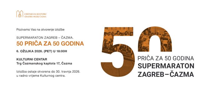 U petak 6. ožujka 2026. u 18 sati u Kulturnom centru Čazma otvorit će se izložba „Supermaraton Zagreb – Čazma. 50 priča za 50 godina“.</p>