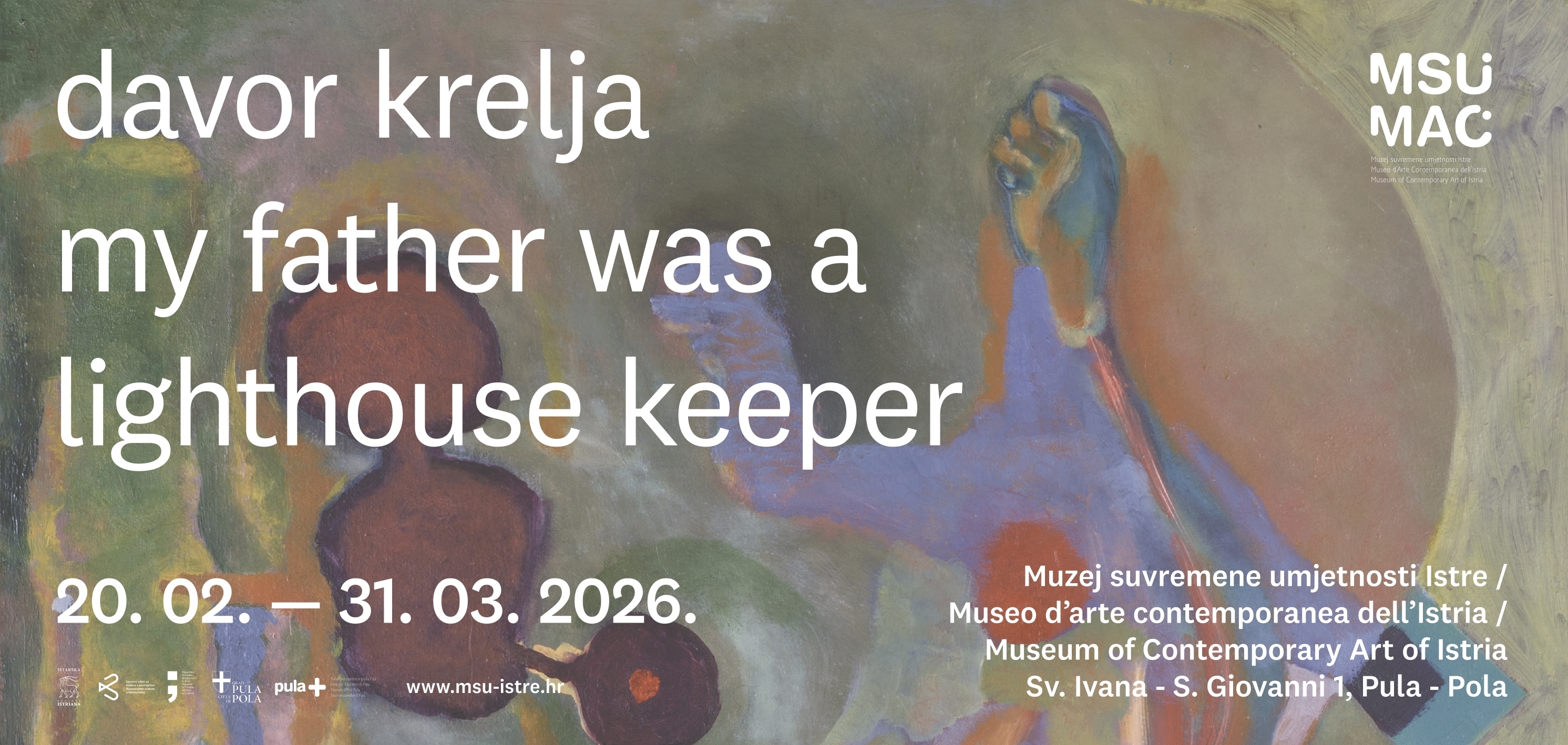U petak, 20. veljače 2026. u 19.00 sati u prostorima Muzeja suvremene umjetnosti Istre / Museo d'arte contemporanea dell'Istria održat će se otvorenje samostalne izložbe akademskog slikara DAVORA KRELJE pod nazivom MY FATHER WAS A LIGHTHOUSE KEEPER. U ovom kontekstu odabran je ciklus slikarskih radova većih formata (diptiha, triptiha i kompozicija) nastalih u razdoblju od 2023. do 2025. godine koja temom, sadržajem i formom vizualiziraju umjetnikova “sjećanja na prošlost i budućnost”, a kojima poseban pečat daje i popratna animacija te sugestivna zvučna podloga. Davor Krelja, jedan od prvih učenika znamenitog istarskog pedagoga i slikara Ivana Obrovca, svoj je likovni put iz rodne Pule nastavio u Zagrebu gdje će se trajno nastaniti po dovršetku studija te će se uz slikarstvo posvetiti pedagoškom i teorijskom radu, ali i ilustraciji i scenografiji. Izložba je istovremeno autoreferencijalna, osobna, ali i općeljudska i univerzalna te predstavlja umjetnikova iskustva i promišljanja u kojima je podjednako i čovjek i slikar, i učenik i učitelj, i dijete i odrasla osoba, te se upravo njome premijerno predstavlja istarskoj publici i vraća na vlastite izvore. </div>