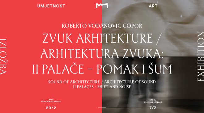 Galerija umjetnina Narodnog muzeja Zadar i Koncertni ured Zadar pozivaju na prezentaciju projekta Roberta Vodanovića Čopora <i>Zvuk arhitekture / arhitektura zvuka: II palače – Pomak i šum</i> koja će se održati u petak, 20. veljače 2026. u 19 sati u atriju Providurove palače.</p>