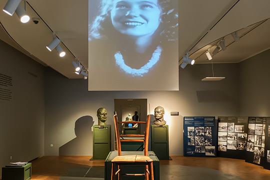 Iz perioda talijanizacije Ljubljane tijekom Drugog svjetskog rata potječu izložene biste talijanskog kralja Viktora Emanuela III. i fašističkog vođe Benita Mussolinija. U ljeto 1941. u Ljubljani je gostovao Teatro dell'Opera di Roma s tenorom Beniaminom Giglijem, pokušavajući stvoriti dojam dobre suradnje. Međutim, OF je 1942. godine naredio „kulturni muk“ kojim se pokušala blokirati suradnja s okupatorima po pitanju umjetnosti, književnosti i drugih kulturnih grana. Predstavljeni plakati jasno ilustriraju fašističku i nacističku propagandu kojom se nastojala širiti negativna slika oslobodilačkog pokreta, partizana i Židova. Jedan od njihovih autora je Jože Beranek, ilustrator propagandnog odjela Slovenskog domobranstva.