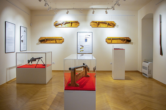 Od vatrenog oružja posebnu pažnju privlači brojno oružje s mehanizmom na kremen. Predstavljeni su prekrasni primjerci kubura i pušaka iz 18. i 19. stoljeća sa zadivljujućim ornamentima koji pokazuju impresivnu vještinu tadašnjih majstora. Ipak, najviše pažnje na izložbi plijeni glomazna puška kremenjača s osmerokutnom cijevi promjera gotovo 30 mm. Ova puška odlično prikazuje snagu i spretnost vojnika u baratanju oružjem.