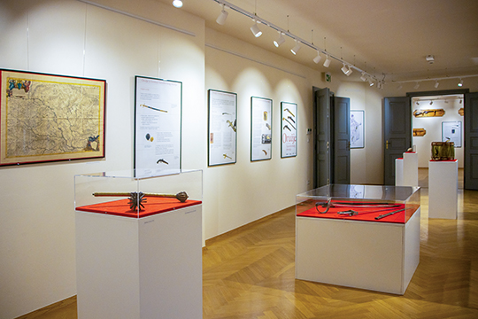U otvorenoj galeriji Samoborskog muzeja postavljena je izložba „Oružje iz fundusa Samoborskog muzeja“ na kojoj je predstavljeno najreprezentativnije oružje i predmeti usko vezani uz oružje iz Povijesne zbirke koji potječu iz razdoblja od 16. do 20. stoljeća. Izložbu su upotpunile fotografije iz Zbirke fotografija i Fototeke Samoborskog muzeja pružajući posjetitelju širu sliku oružja kao predmeta koji je od svoje isključivo funkcionalne uloge, kroz povijest, došao do uloge koja znači čast i vlast. Cilj ove izložbe je sagledati oružje iz kulturološke i tehnološke perspektive tako da sami predmeti budu u središtu, odnosno da samo oružje priča o svojem identitetu i identitetu svojeg nositelja kroz mnogobrojne ornamente i ukrase koji ga krase.