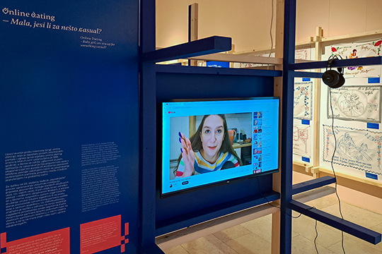 Vječna ljudska preokupacija – romantična ljubav na kuhinjskim zidovima prije stotinu godina, a #love na virtualnim zidovima današnjice, komentirana je kazivanjima žena rođenih 20-ih i 30-ih godina 20. stoljeća koja upućuju na praksu odabira pogodnog hetero-partnera (najčešće njega imućnoga, a nje vrijedne), umjesto odabira na temelju obostrane zaljubljenosti kako sugeriraju zidnjaci. U suvremenom kontekstu ljubavi dotičemo se, povijesno gledano, jedne sasvim nove pojave – online datinga – i promatramo veze na daljinu, značajno olakšane razvojem novih tehnologija pa time, pretpostavlja se, i češće. Jedno i drugo svjedoči nam kazivačica i kreatorica sadržaja čiji prvi susret s globalno popularnom aplikacijom za upoznavanje, ako već nisu na YouTube kanalu, posjetitelji mogu pogledati u izložbi.