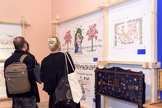 U Etnografskom muzeju u Zagrebu otvorena je izložba „Sa zida na zid – od vezenih do virtualno dijeljenih vrijednosti“ autorice Gordane Viljetić koja, u suradnji s Akademijom likovnih umjetnosti Sveučilišta u Zagrebu i samostalnom performativnom umjetnicom Vlastom Delimar, publici predstavlja kolekciju zidnjaka unutar Zbirke platnenog posoblja Etnografskog muzeja, njihovo podrijetlo i rasprostranjenost, načine izrade, tematske i, prije svega, bogate značenjske odrednice sa željom da ovaj tradicijski predmet posluži kao polaznica u sagledavanju aktualne svakodnevice u kontekstu digitalne kulture.